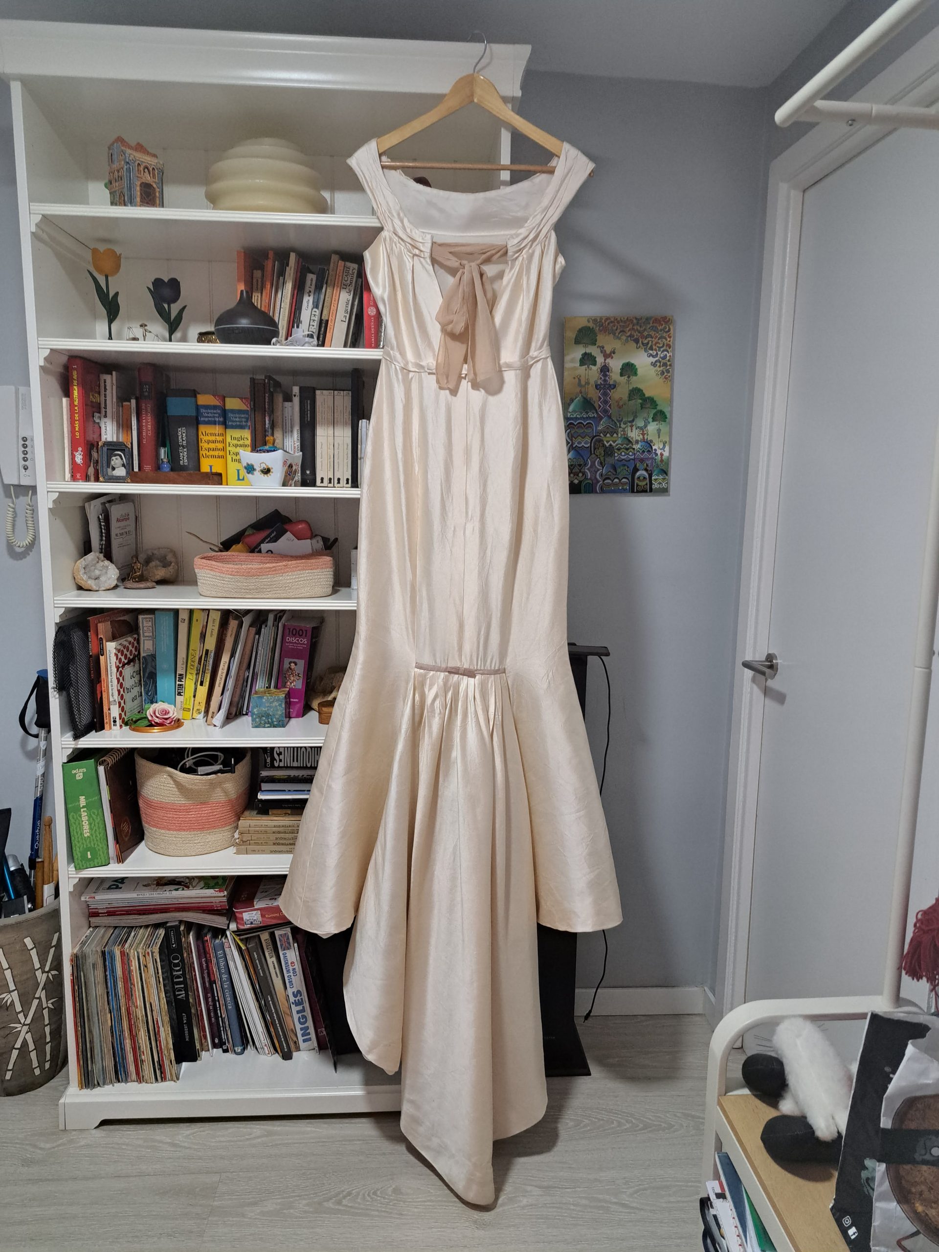 Sé el primero en valorar “Vestido de novia de seda salvaje , corte sencillo y muy elegante con pequeña cola.”