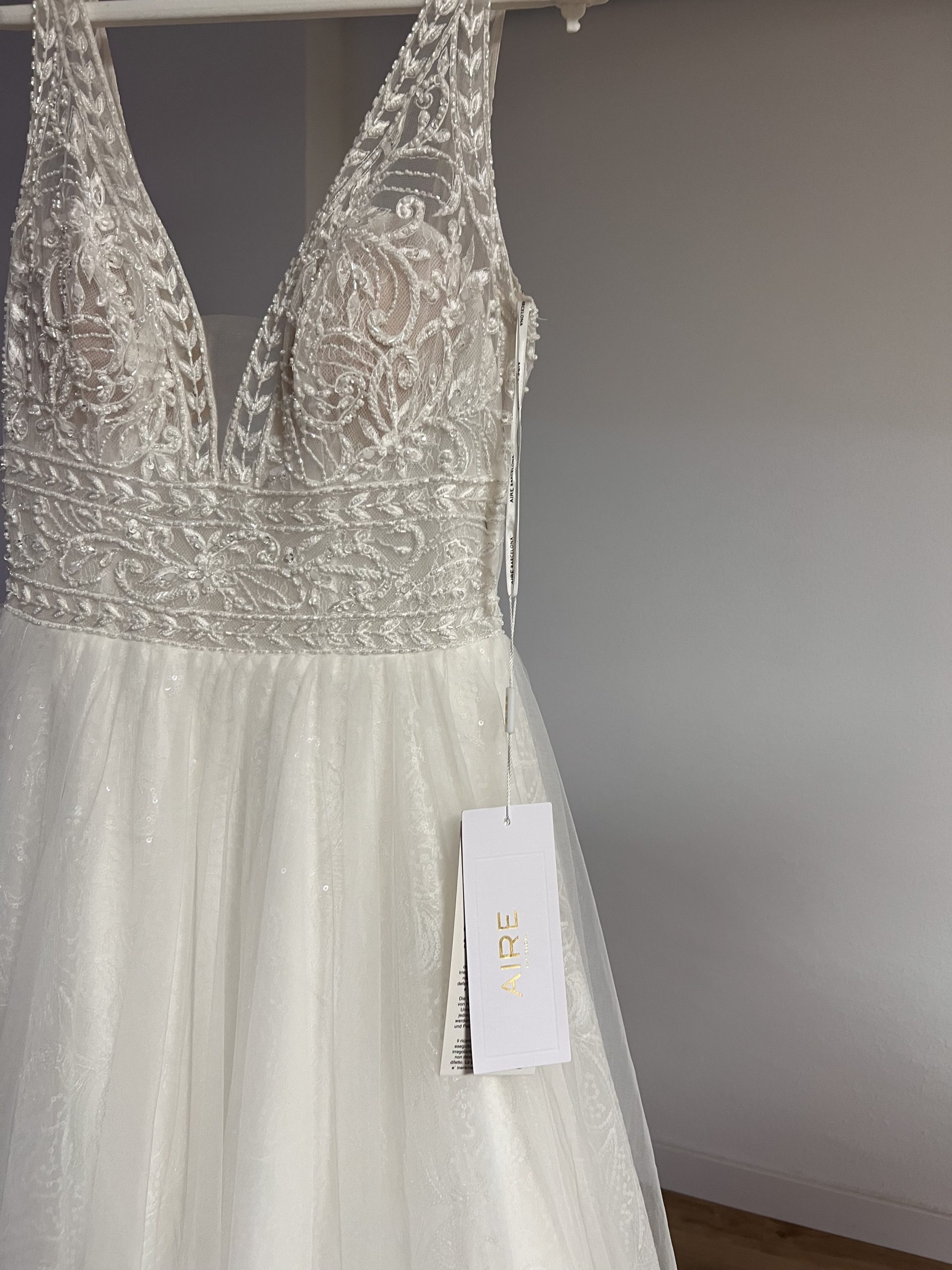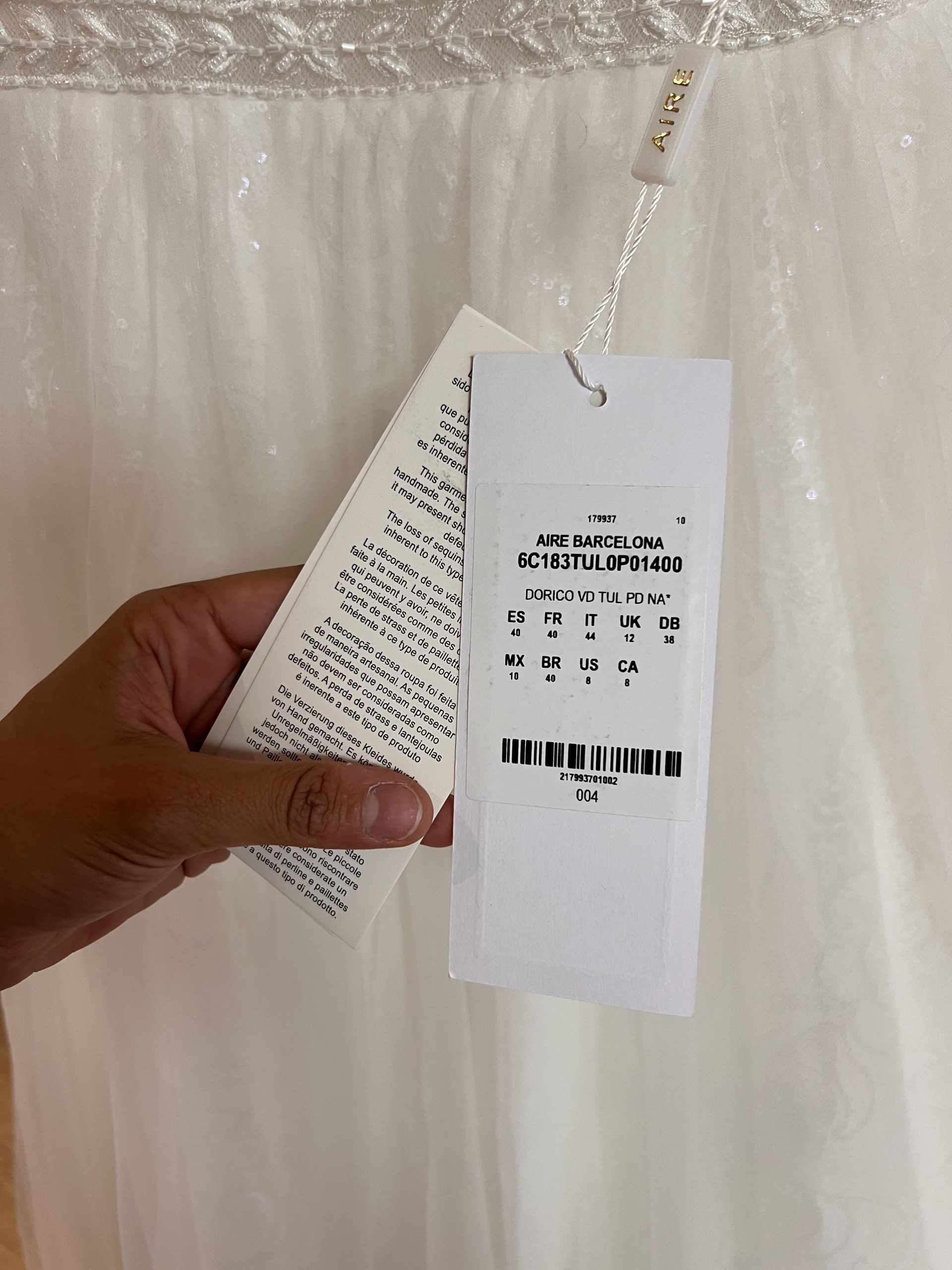 Vestido de novia Aire Barcelona modelo Dórico. No lo he estrenado, no me gusta el corte de princesa y no me veo casándome con el. El vestido está sin estrenar. Sacado de la tienda. No me permiten cambio por otro modelo.